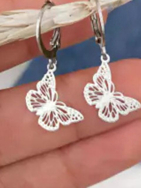 Argolinhas em aço inox com detalhes em filigrana e design delicado de borboleta, combinando elegância e sofisticação."
