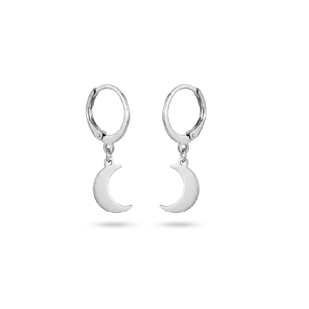 Brinco argolinha em aço inoxidável com pingente de lua mística que transmite charme e personalidade em cada detalhe.