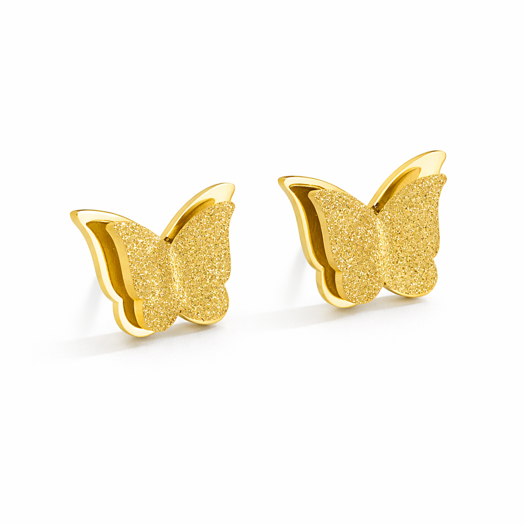 Graciosos e cheios de encanto, esses brincos em formato de borboleta com asas duplas simbolizam liberdade, transformação e leveza. O design delicado e detalhado transmite um ar de feminilidade e sofisticação natural, perfeito para qualquer ocasião.