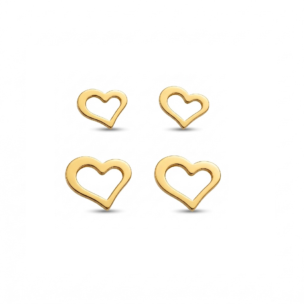Duo de Brincos Corações Vazados em Aço Inoxidável é perfeito para quem ama acessórios elegantes e atemporais. Seu design minimalista em formato de coração vazado traz leveza e romantismo, combinando facilmente com qualquer estilo, do casual ao mais refinado.