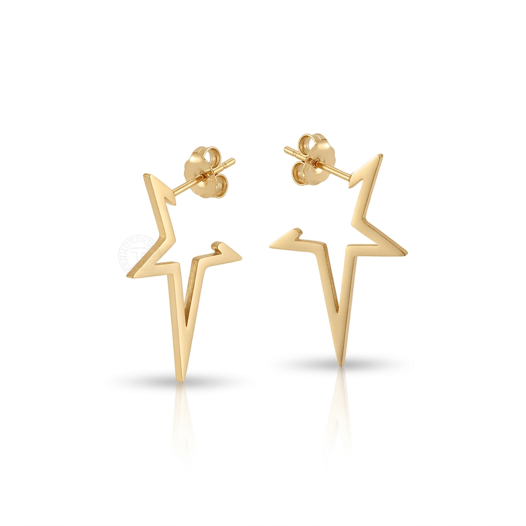 Modernos e cheios de atitude, esses brincos trazem o símbolo da estrela de pontas em um