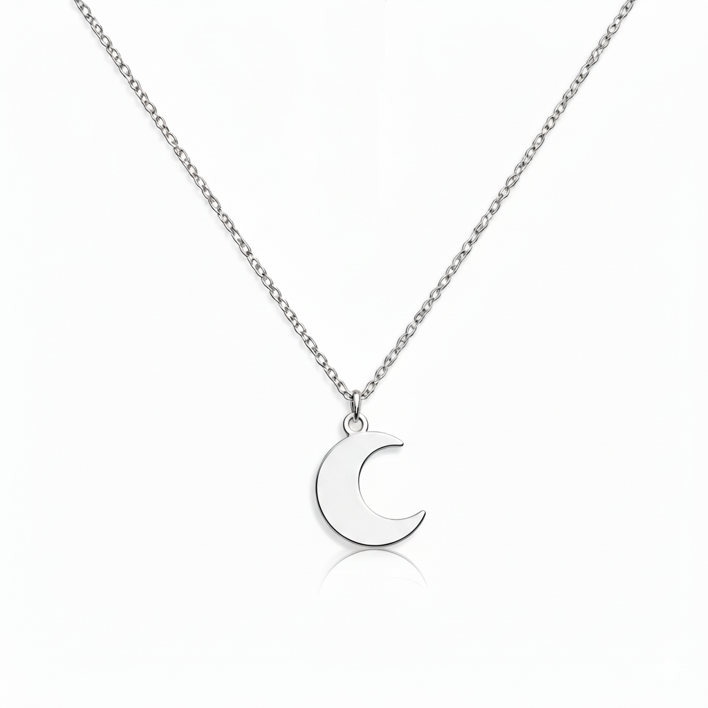 Colar com pingente em formato de lua com superfície lisa, elegante e minimalista.
