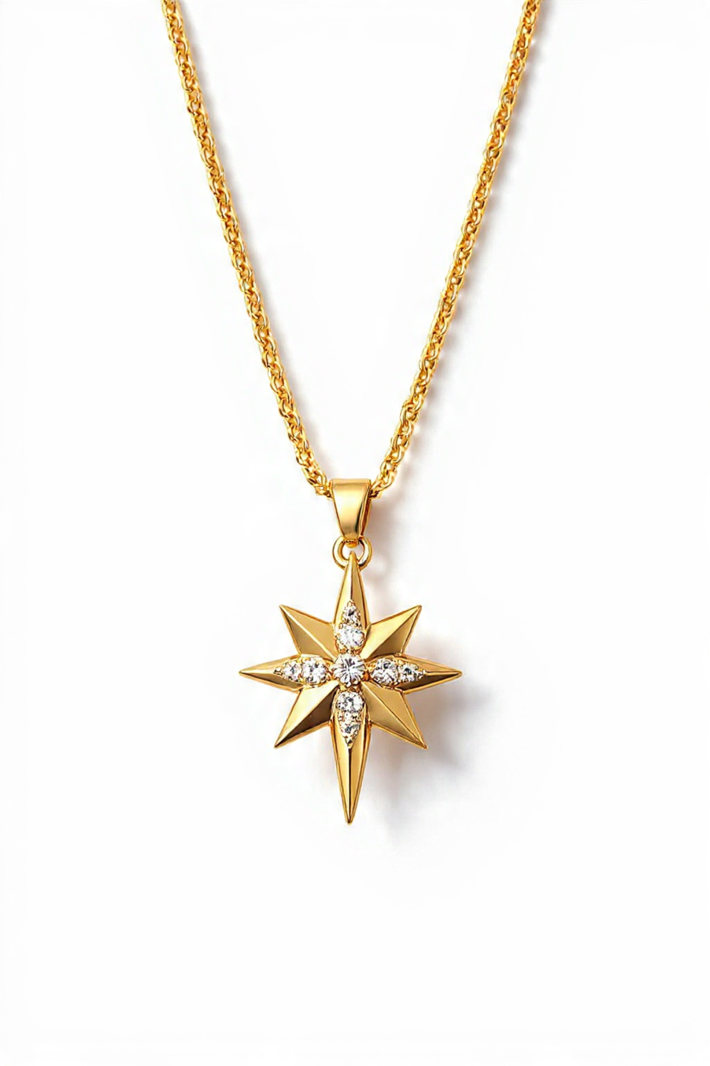 Seu pingente em forma de estrela, com acabamento polido e detalhes em brilho, cria um visual elegante e