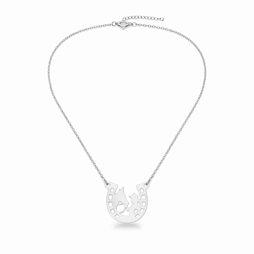 Delicado e cheio de significado, o Colar Ferradura com Menina e Cavalo simboliza amor, liberdade, aventura e proteção. O pingente em formato de ferradura representa sorte e boas energias, enquanto o desenho vazado da menina e do cavalo traduz a conexão especial entre eles — uma união marcada por carinho, confiança e paixão pela natureza.
