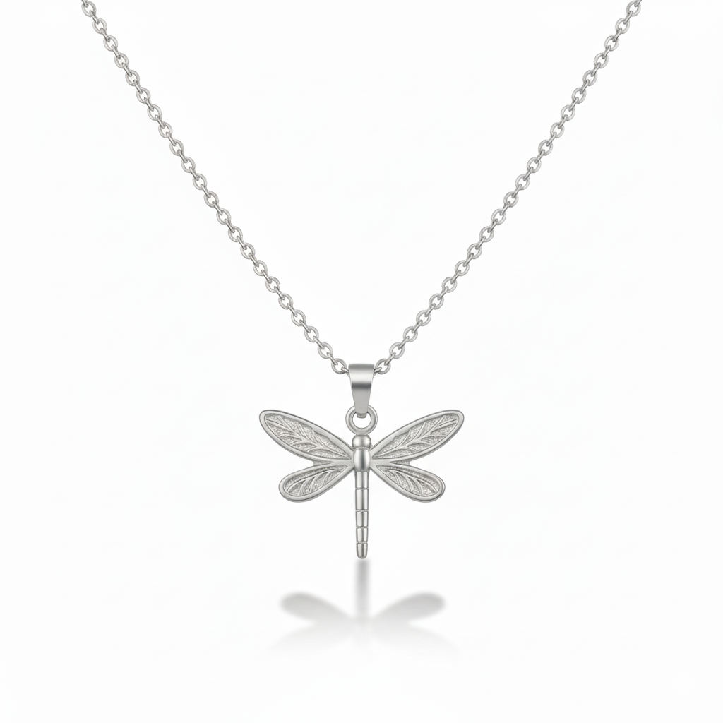 Delicado colar com pingente de libélula, símbolo de renovação e leveza.