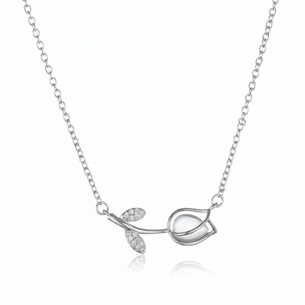 Delicado e cheio de significado, este colar une o charme da tulipa, símbolo de amor verdadeiro e elegância, com a energia mística da pedra Olho de Gato, conhecida por atrair proteção e intuição.