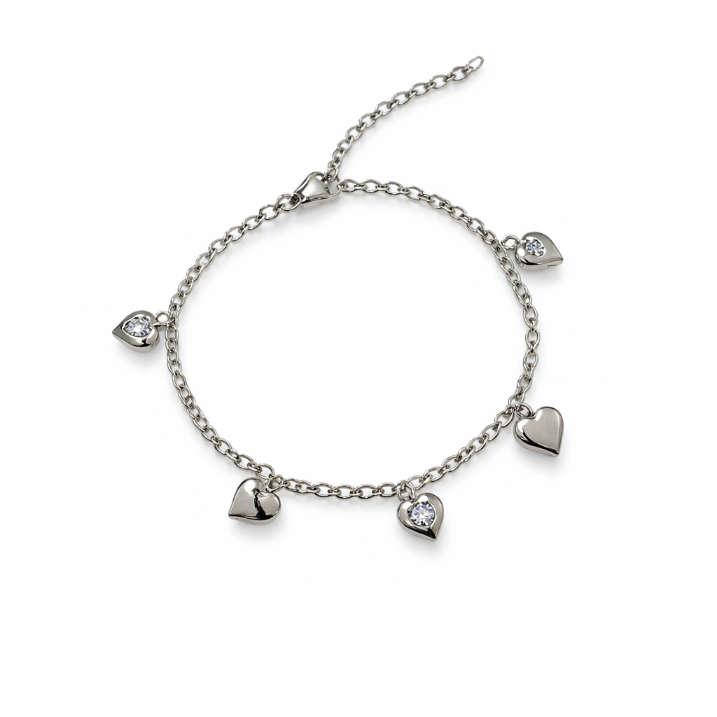 Pulseira com vários corações intercalados que formam um design leve e harmonioso.