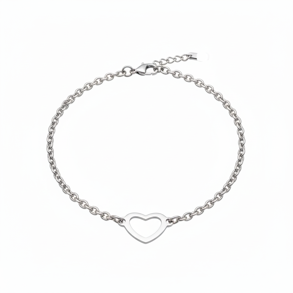 Delicada e cheia de charme, a Pulseira Coração Vazado é perfeita para quem ama detalhes sutis e femininos. Confeccionada em aço inox, é resistente, não escurece e ideal para o uso diário. O coração vazado traz leveza ao design e simboliza amor e delicadeza.